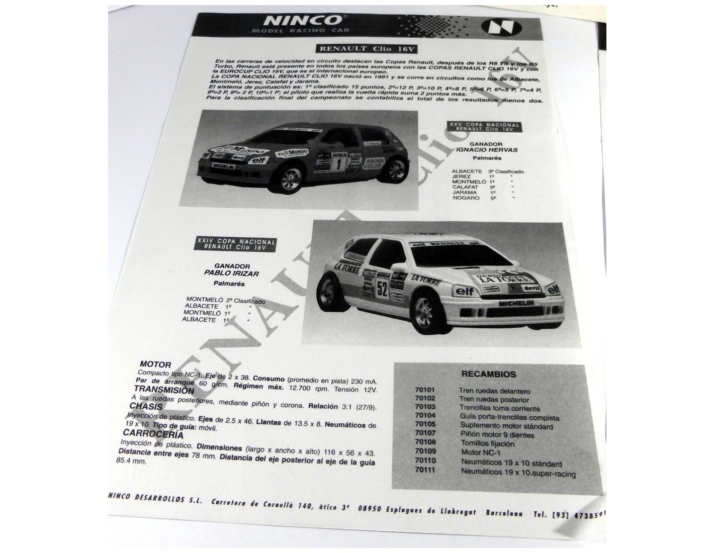 INSTRUCCIONES MANTENIMIENTO RENAULT CLIO 16V NINCO